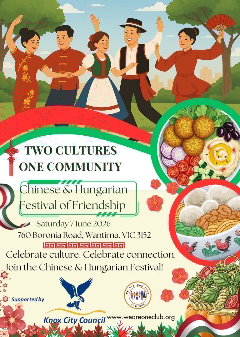 Join us for a vibrant celebration of unity, tradition, and joy! The Chinese-Hungarian Festival of Friendship brings together two rich cultures through dance, music, and community spirit. Enjoy live performances featuring traditional Hungarian folk dancers and Chinese classical artists, multicultural group dances,