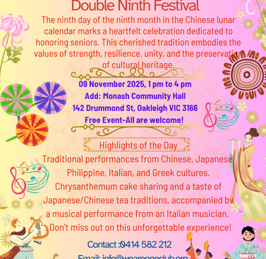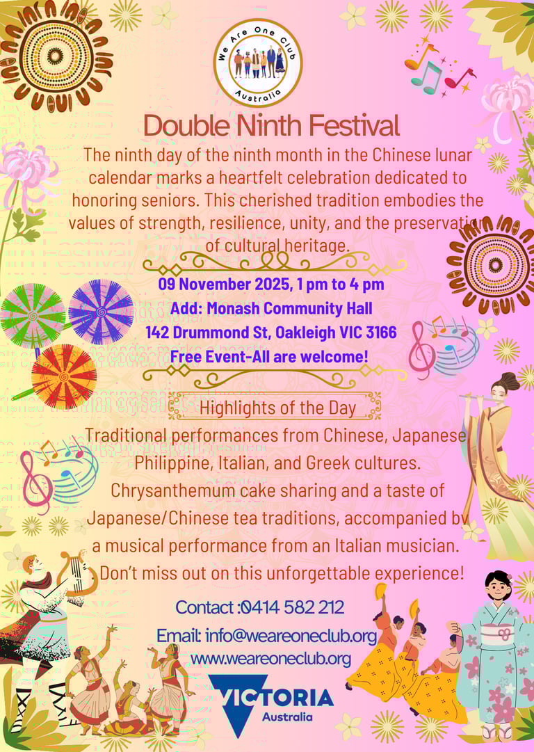On 9 November 2025, We Are One Club proudly hosted the Double Ninth Festival at Oakleigh Hall, bringing together community members to celebrate longevity, cultural heritage, and intergenerational connection.